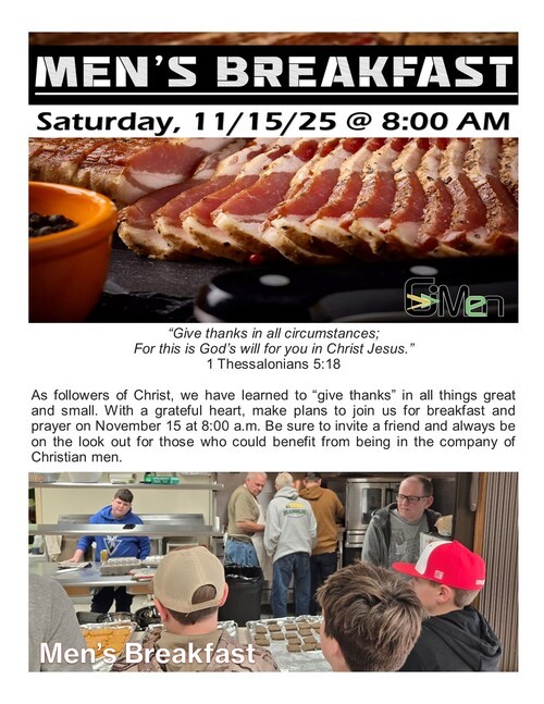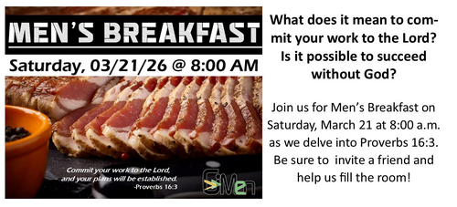 Greetings All! I’m looking forward to seeing you on October 19 at 8:00 a.m. for Men’s Breakfast.
